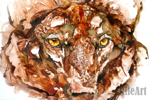 The original painting “Wolf it” is a 11 x 14″ watercolor on Yupo painted in 2010. Wolves and Bears are depicted in many of my paintings. Besides research material and photos from zoo visits, my main inspiration for this painting was my dog “Cody” a Siberian Husky that was unlike any dog I’ve ever shared my home with.